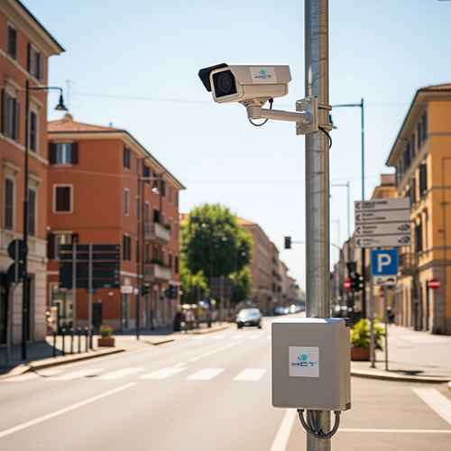 - Sistema di lettura targhe: installato ai varchi di ingresso e uscita dei Comuni, consente il monitoraggio in tempo reale del traffico veicolare. Il sistema rileva automaticamente le targhe e ne verifica la classe ambientale, fornendo dati utili per analisi statistiche e per eventuali interventi di regolazione del traffico.